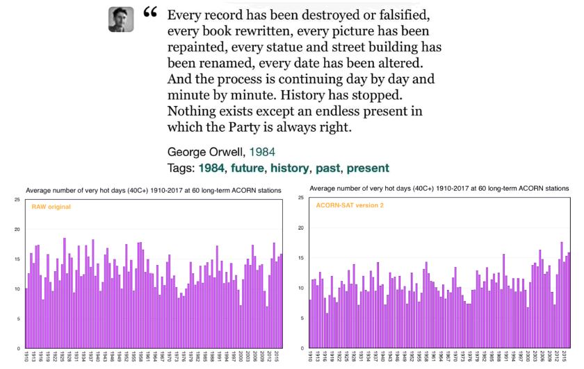 The historical temperature record was written down when there was no Human-caused Climate Change Agenda is the Science Community. They had no agenda, they just wrote down the temperatures.