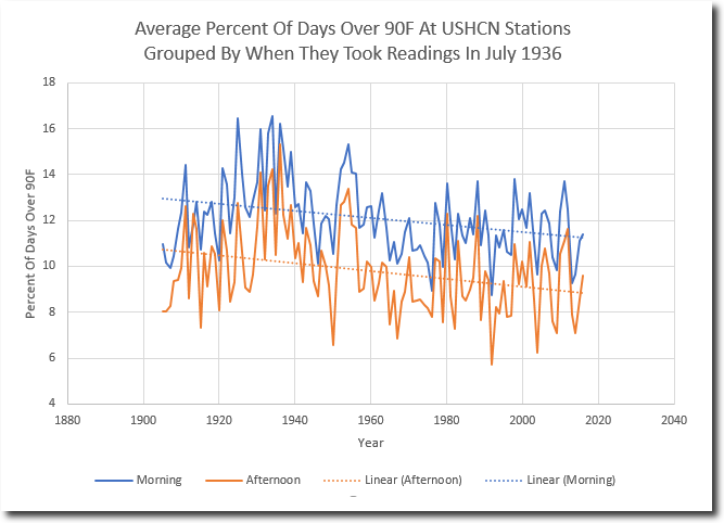 I spent some time a couple years ago developing R scripts to examine the monthly USHCN station records Tony was talking about. I wanted to check for myself. Yes, confirmed. The cooling of the early years and warming of the later years by the combination of the TOB and PHA adjustments is very plainly seen by comparison to the “raw” files. To NOAA’s credit for transparency, the raw, tob, and FLs (finalized) files are all still available and are being updated in parallel here for the USHCN stations.