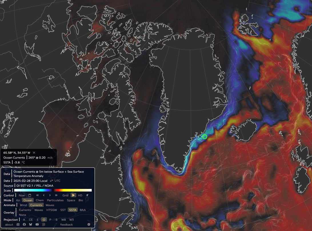 Close enough. The glacier calving off the Southeast coast of Greenland cools the Gulf Stream and sends a plume of icy water northward on the current- per attached.