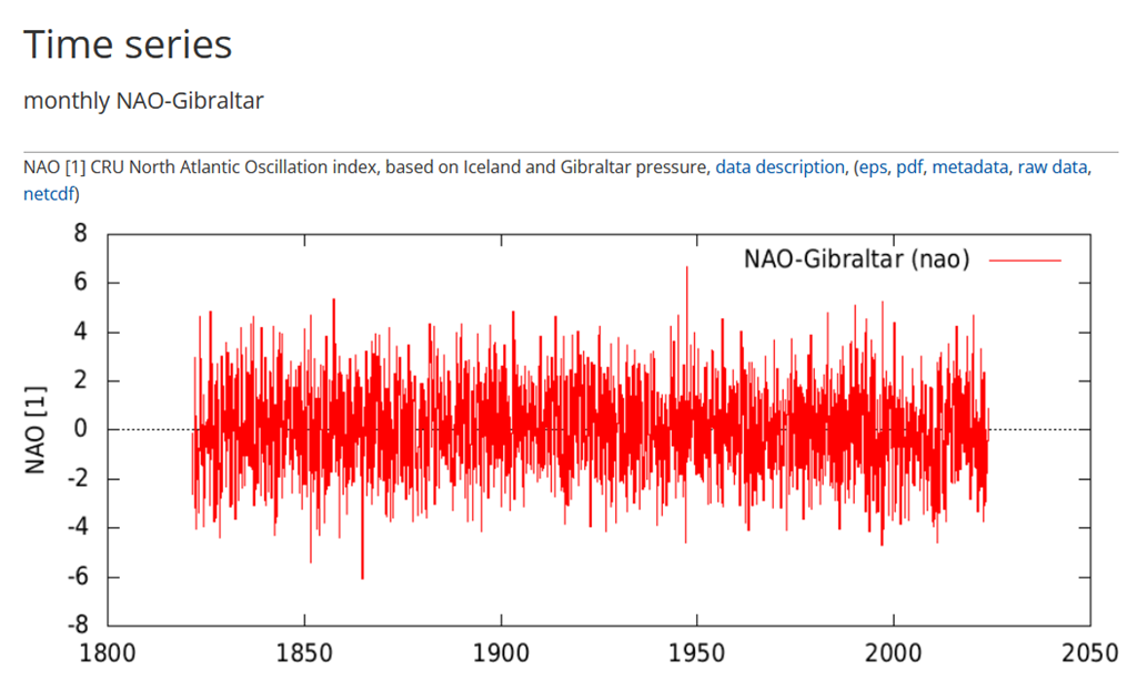 The NAO has the strongest effect on weather in winter, but again we find none of the extremes claimed by the Met Office, which would surely have become apparent now after 200 years of warming.