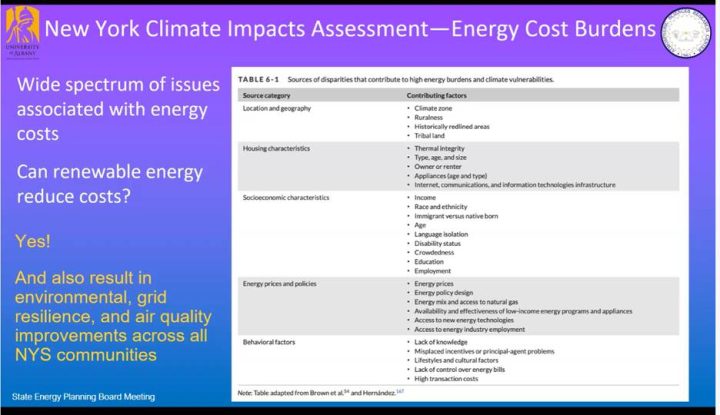 The claim was also made at an New York State Energy Plan Planning Board on March 3, 2025 to adopt the scope for the state energy plan the claim was mentioned. The presentation by Jeff Freedman from the Atmospheric Sciences Research Center, University at Albany, Albany, New York included the following slide that makes the claim that renewable energy can reduce costs.