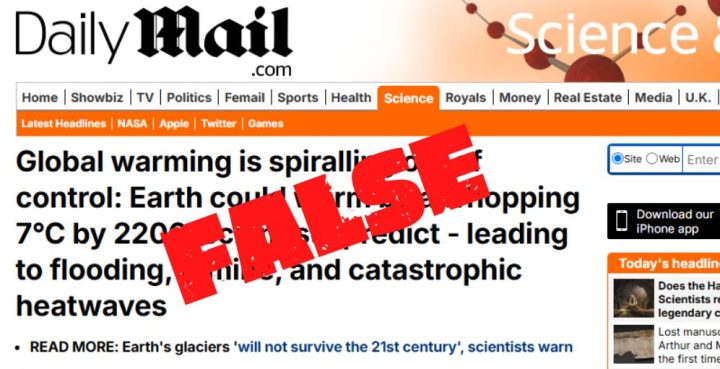 Most of the article presents the model’s outputs as though they are likely, but buried further down is the admission that their less alarming scenarios show “there’s a 10 per cent chance that Earth will still warm by 3°C (5.4°F) by 2200 even if emissions begin to decline now.” Ten percent is not likely, yet it is framed by Daily Mail as though it is alarming and deserving of immediate civilization-level changes.