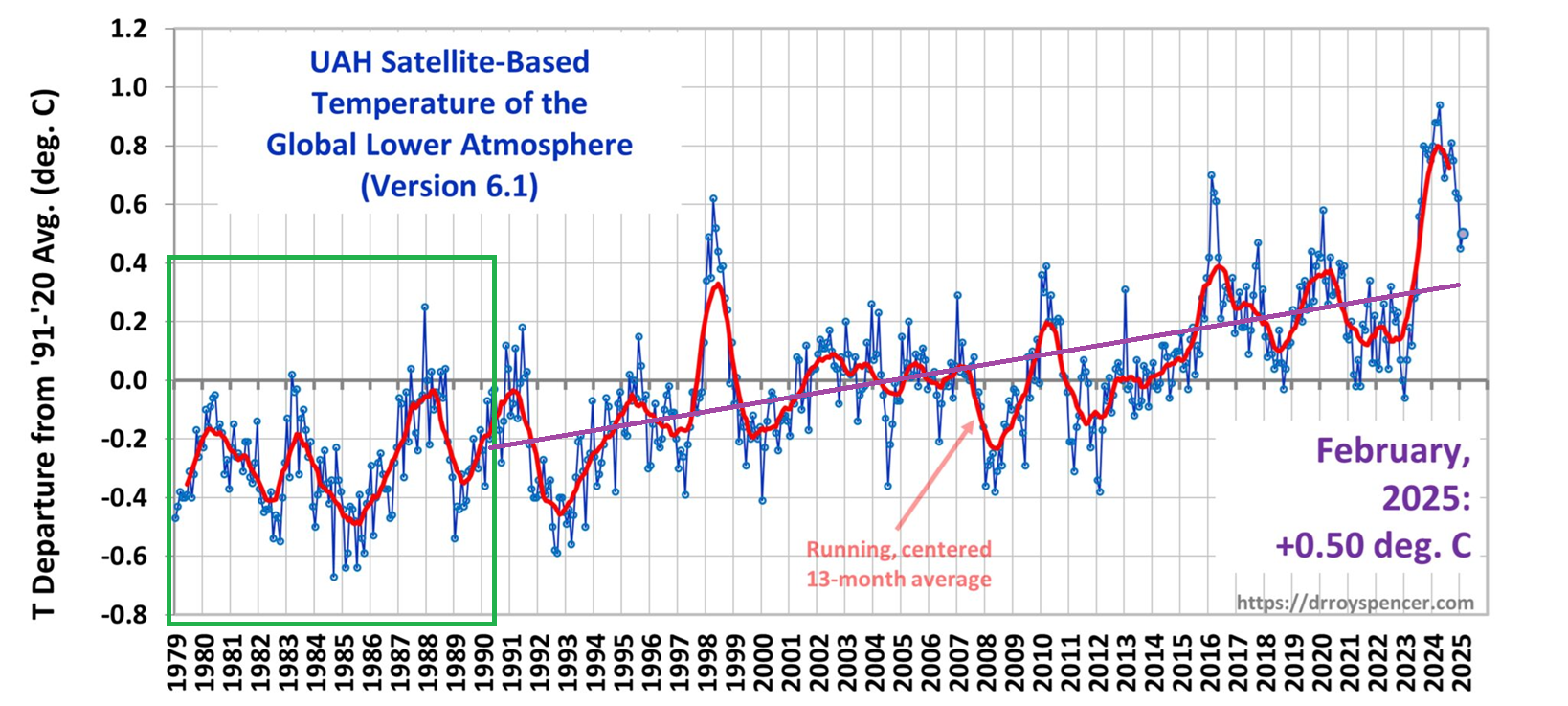 Seems like a bit of an obvious question….. but what does the evidence suggests in the time that has elapsed since 1988? After all, 1979 – 1988 is only 10 years, if including both start and end years. By comparison, 1988 to 2024 offers over 3 and half decades of trend. I don’t believe even the eminent Dr Spencer would deny the upward trend since 1979 to present. Or course the cause of the upward trend is as ever up for debate 🧐