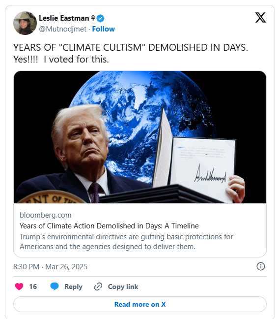 I could not agree more to see the climate change nonsense removed from our national security priorities. How much has been spent the last 25 years on this and this “investment” has not moved the needle one bit. During COVID lockdowns no reduction as I think they, the climate change fanatics, globalists and the WEF thought was possible and to prove their point (net zero). Our country faces graver challenges than to get side tracked on this foolhardy endeavor. Financial collapse is not far off and yet these political dimwits want to focus on climate change. DOGE has proven these people are not serious people and quite lacking. The waste, fraud and abuse is utterly appalling. Good riddance to the climate change waste, fraud and abuse.