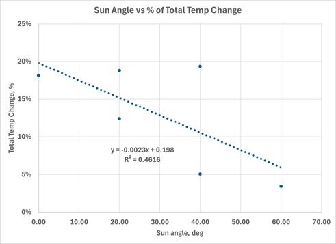 Figure 9 shows the expected correlation of sun angle to temperature change. Note correlation to Land is stronger than to sun angle.