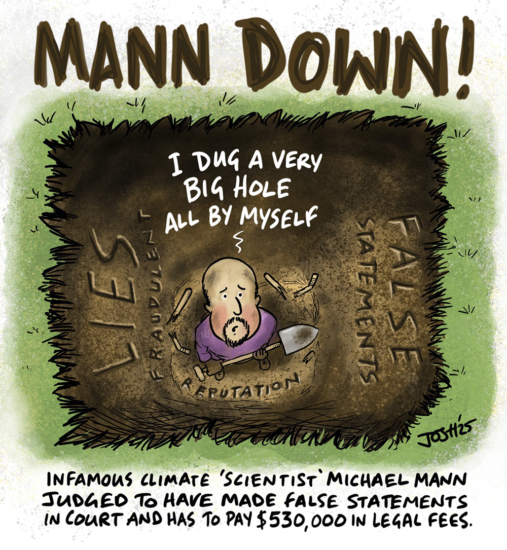 Has Michael “I Lied About Having Been Awarded A Nobel Prize” Mann sued Josh yet for that cartoon?….YOU are next, Anthony, for hosting it…and then they come for us for commenting about it.
