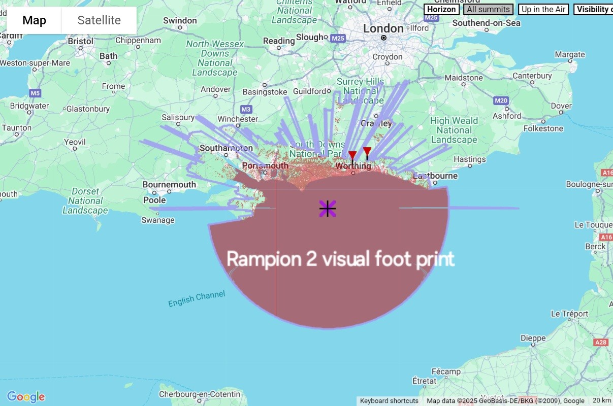 This map shows the visual footprint all the way to the M25.