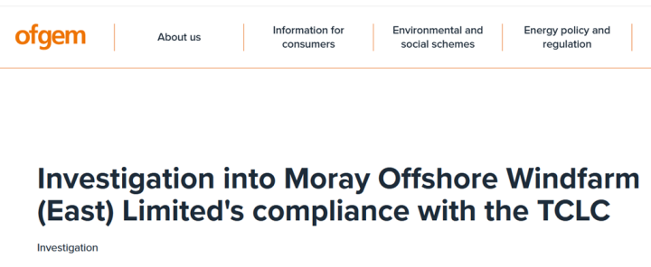 Ofgem is investigating the compliance of Moray Offshore Windfarm (East) Ltd (the owner and operator of Moray East Offshore Windfarm) with the requirements of condition 20A of the Electricity Generation Standard Licence Conditions (known as the Transmission Constraint Licence Condition, or “TCLC”).