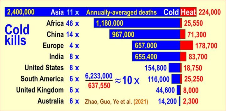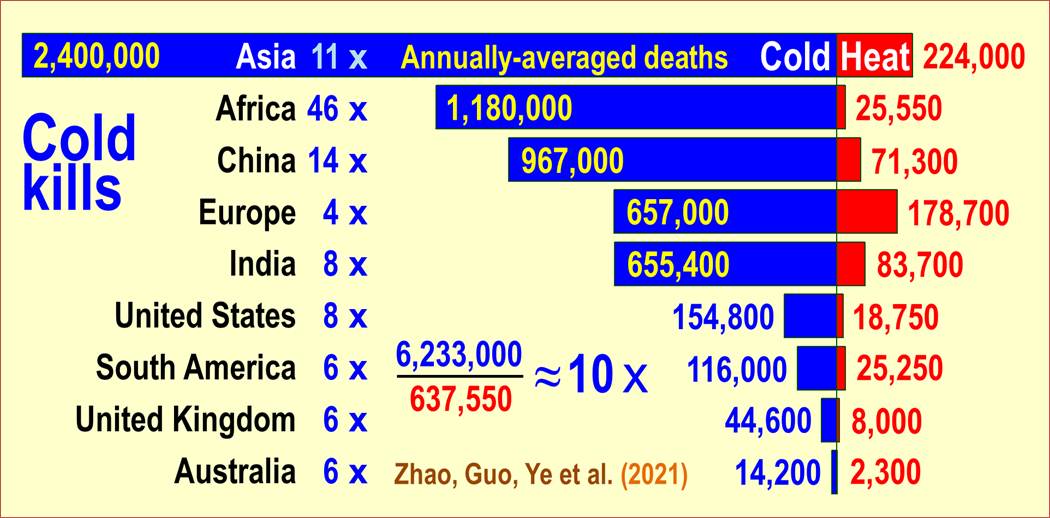 Where, then, are the drastic changes in climate and consequent catastrophes and cataclysms so luridly predicted by the climate Communists? Where are the mass extinctions? Why is the climate much as it was in the Middle Ages? Why are ten times as many dying of cold as of heat? Why are crop yields at record highs? Why is the planet greening so fast?