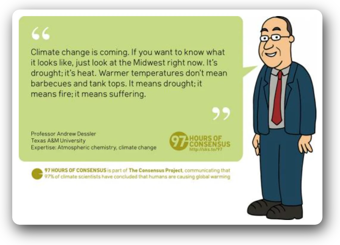 “Texas A&M, which is Andrew Dessler’s employer, has a total of 13,712 faculty and staff.”