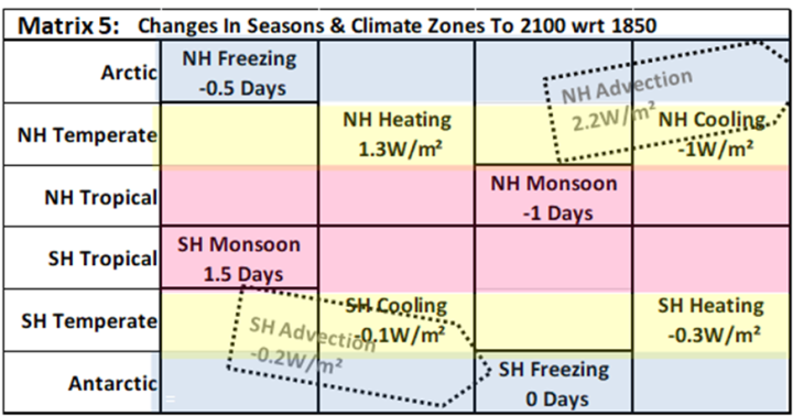The annual phases are taken from December Solstice to March Equinox to June Solstice to September Equinox to December Solstice. The zones and phases can be visualised as a six by four matrix as shown in Matrix 1 for conditions in 1850