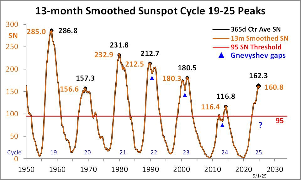 This reduction of solar activity even at the maximum of cycle 25 is causing alreadya reduction of terrestrial temperature and the ENSO as discussed in our paper Zharkova and Vasilieva https://www.scirp.org/pdf/ns2024164_18303679.pdf to the IPCC prediction of global warming. The global warming will be postponed by 30 years until 2053 with this modern GSM and terrestrial cooling instead. The reduction of protons in the ENSO areas rclaimed by Adams et al, 2025 eflects a general reduction of enemy energetic particles occurring during any GSM.