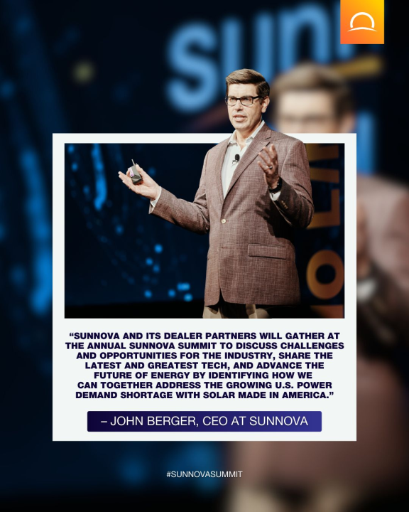 “Our Founder and CEO John Berger reminds us why this event is so pivotal: Sunnova and our dealer partners are uniting to tackle the U.S. power demand shortage with American-made solar solutions.”