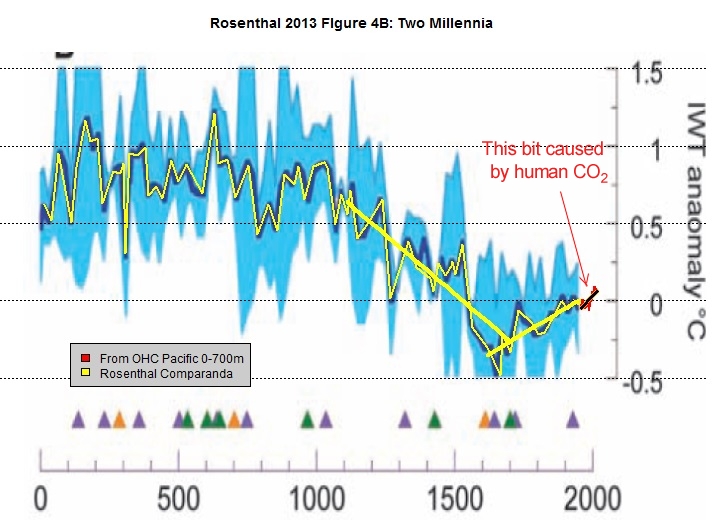 From Rosenthal et al 2013 “Pacific Ocean Heat Content During the Past 10,000 Years”