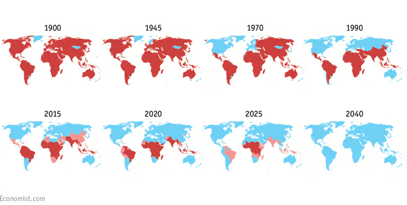 Climate at a Glance: Malaria concisely rebuts the claim that climate change is driving mosquito-borne disease outbreaks. Data, in fact, shows that during the recent period of slight global warming over the past century, Malaria has sharply declined, and it is projected to possibly be entirely wiped out sometime after the year 2040. See the map below from an article in The Economist titled “The shrinking malaria map.”