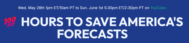 But it’s not too late to stop these cuts. Already, public pressure has helped to reopen shuttered weather data centers. To help keep this pressure building, meteorologists and climate scientists from across America want to fulfill our mission by sharing our science with you – so we’re coming to your screens, speaking and answering your questions, for over 100 hours, in this science-filled, non-partisan event: