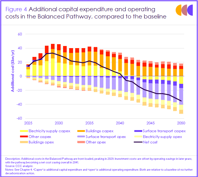 For a start, the CCC’s Seventh Carbon Budget is clear that the costs will be huge in the early years up to 2040, after which quite miraculously savings will set in.
