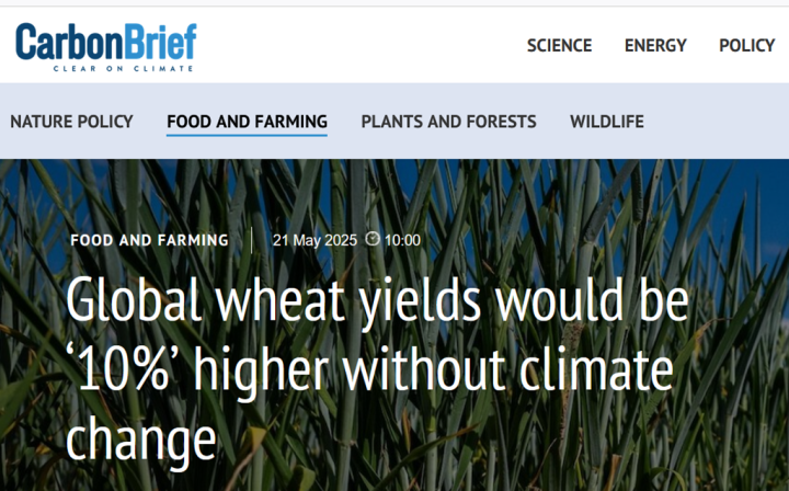 “[W]e estimate that climate trends have caused current global yields of wheat, maize, and barley to be 10, 4, and 13% lower than they would have otherwise been. These losses likely exceeded the benefits of CO2 increases over the same period, whereas CO2 benefits likely exceeded climate-related losses for soybean and rice.”