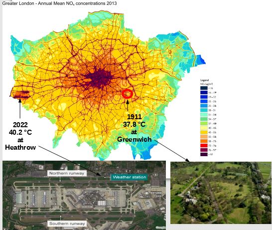 London is just one big UHI centre and any temperature record there is meaningless, whether it be at Heathrow, Kew Gardens or the Greenwich Observatory.