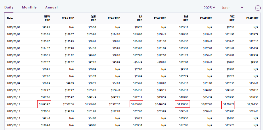 The price reached the AUD17,500/MWh cap a few times. And that is AUD17.5/kWh or USD11.2/kWh. The retailers pay that; not consumers. They usually have some means of hedging against high wholesale price.