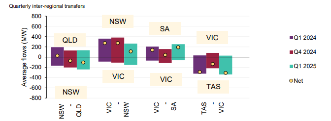 While I’m looking at the AEMO Q1 report, here are the state import/export figures. Victoria exports to each of its neighbours, again as you’d expect from the lower price. That is not a failing grid.