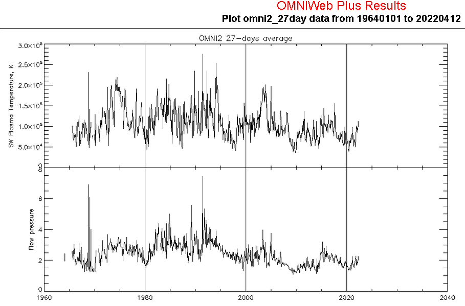 solar wind temperature and pressure: