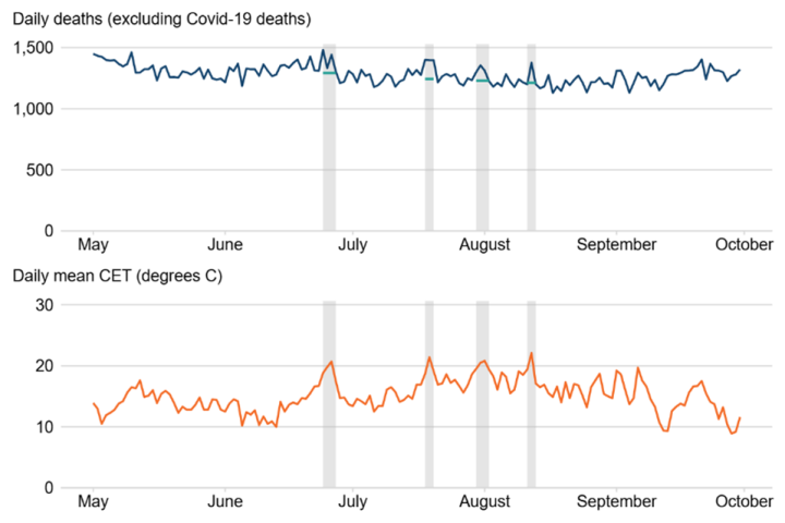 The need and desire for such data to convince the public that their interests lie in radical and expensive emissions-reduction policies and in green politics more broadly, has created a market for climate chancers of all kinds. But the task of producing an official version of the relationship between heatwaves and deaths falls to the UK Health Security Agency (UKHSA). Though this fails to provide running commentary of the number of deaths per day, thereby failing to keep people terrified of sunshine, it does attempt to compile retrospective statistics of the kind that we became used to during the Covid debacle.
