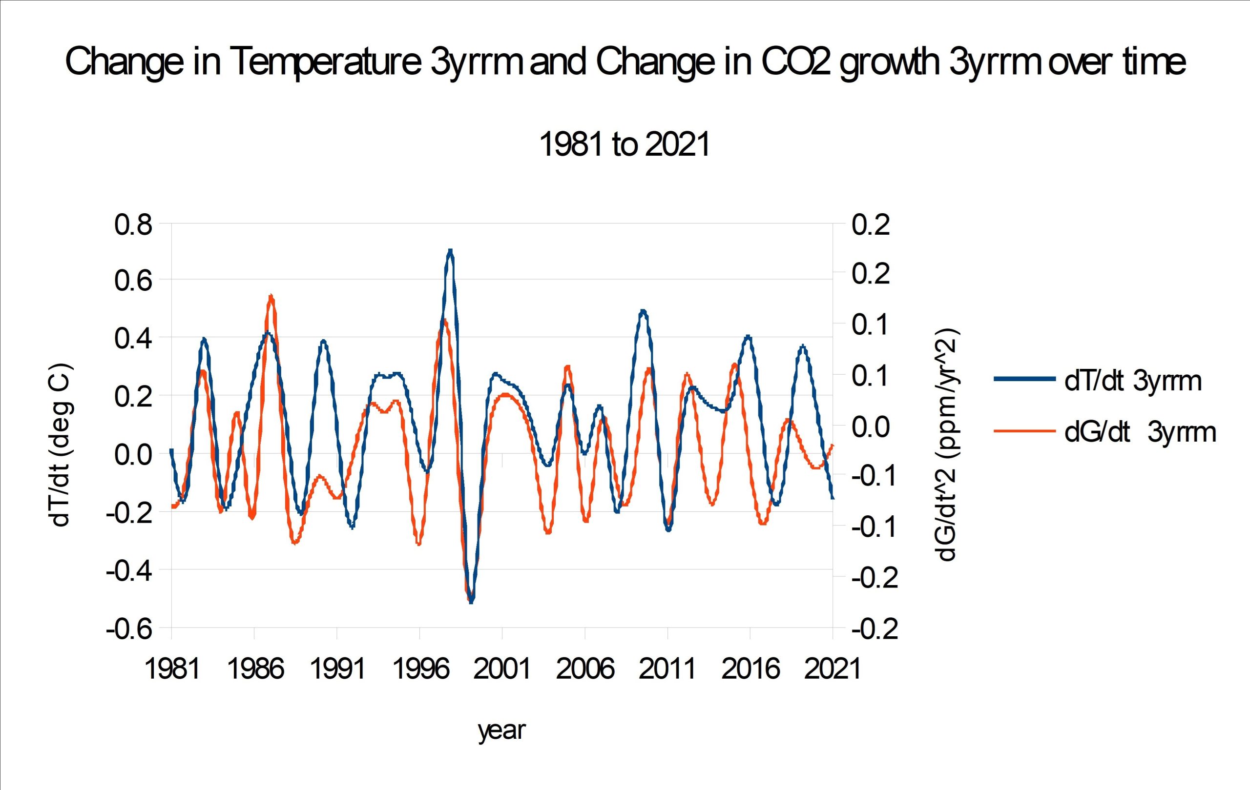 This one I don’t agree with. Why are you using annual data when you have monthly and even daily CO2 data to work with?