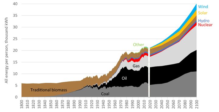 It’s interesting to see that per capita energy use has increased about seven or eightfold since 1800. The population has increased eightfold since then.