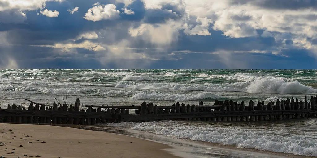 My family and I were on a quick one week vacation on my beloved Hunter 35.5 sailboat. We were ending it over southeast at South Haven, Michigan final night and had to get back northwest to Racine, Wisconsin final day. So I foolishly took the boat (with reefed sails) out of the harbor breakwater heading wnw into a brisk windy morning, and soon encountered 10 foot Lake Michigan waves on a 30 foot peak to peak spacing thanks to shore wave reflection ‘bathtub’ effects. Needless to say, the bow dug 3 feet of cold blue water right into the aft cockpit with every wave. Safer to plow ahead than turn around. So strapped myself into the helm—with family safe below but heaving sea sick into the bilges—and kept going. By the time we finally got across the lake nearing Racine many long hours later, it was so calm I had to furl the sails and start the engine. They never forgave me. I never forgot that day.