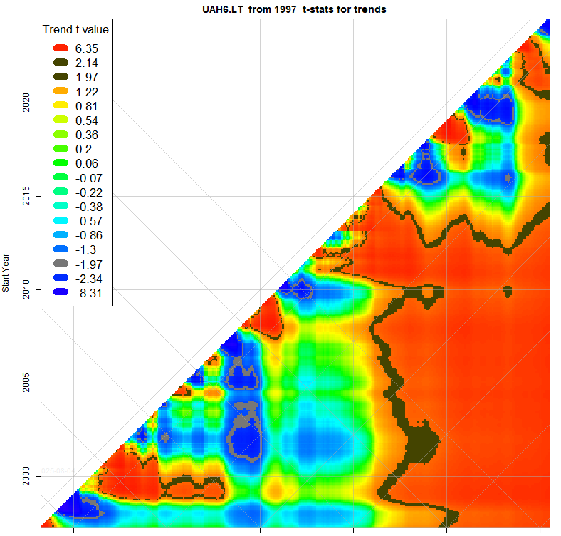 It’s scientifically dishonest to compare a decadal trend from 40 years to one from only 15 years. In fact, it’s impossible to correctly get a decadal trend with less than 2 decades of data and pretty meaningless with less than 3 decades. The shorter the period you choose, the more likely you are to get a spurious, exaggerated trend. Show us the trends from approximately the same time period but split it into even groupings of 27 years, and I might pay attention. Also, data source? Satellite data only goes back to 1979