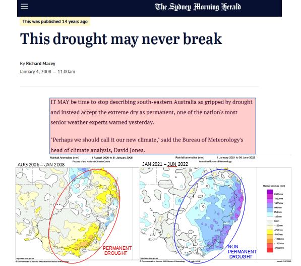 But a chief climate ‘expert’ of the Bureau of Meteorology said SE Australia was in a permanent drought. An old slide of mine to show that the ‘climate expert’ knew nothing of past climate cycles, or, going further, ocean oscillations.