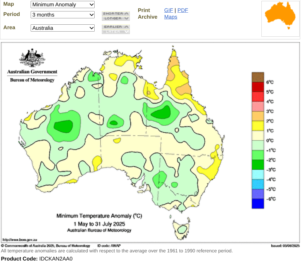 According to the global warming alarmist, BoM, it has been a cooler than average 3 months over most of Australia.