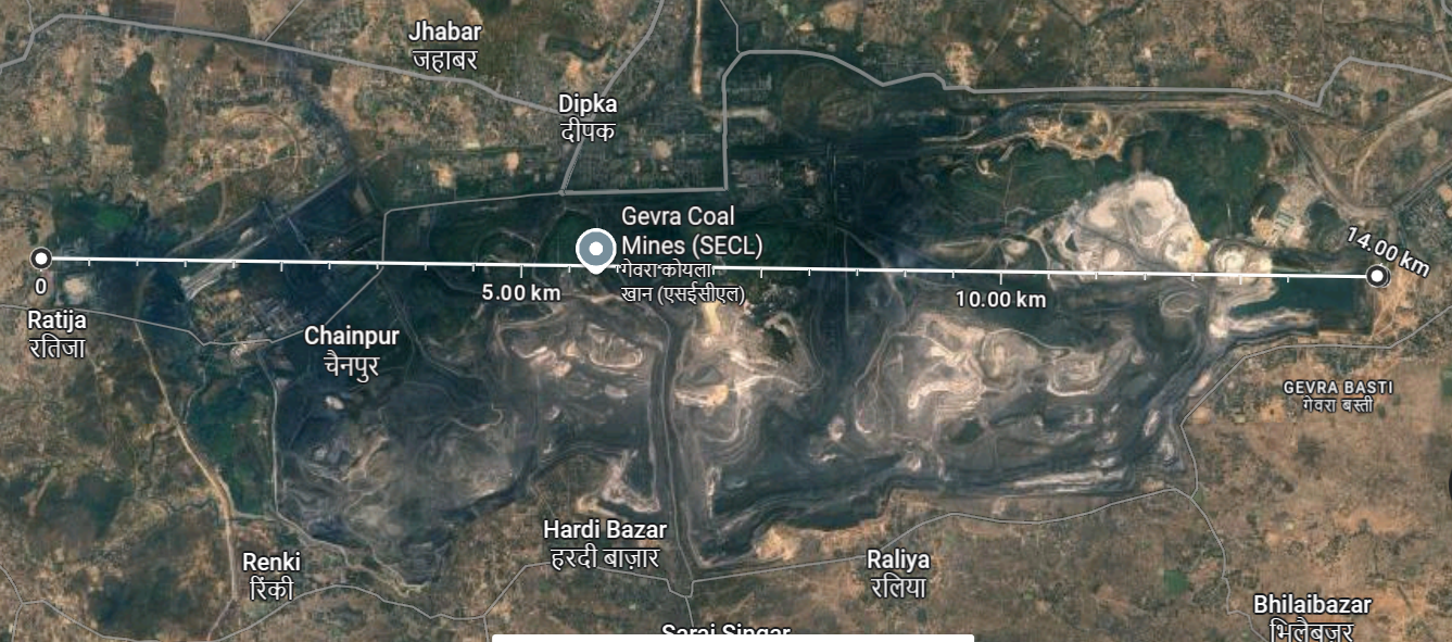 Here is an image of the Gevra coal mine in Chhattisgarh. It occupies about 32 sq miles. Just one mine. Every tree gone, every pond. And not in a desert, but in heavily populated land.