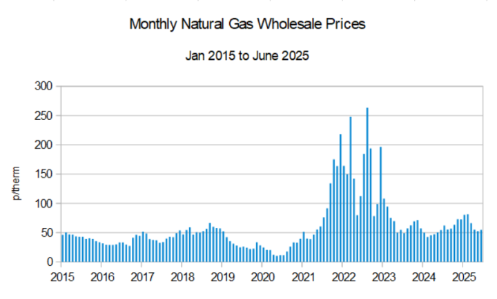 In June this year, according to OFGEM, wholesale gas prices were 86.28p/therm, compared to 46.10p in January 2015, an increase of 87%. But we have also had something called inflation in the last ten years. Since January 2015, RPI has risen by 58%, so the real increase is much smaller than supposed:
