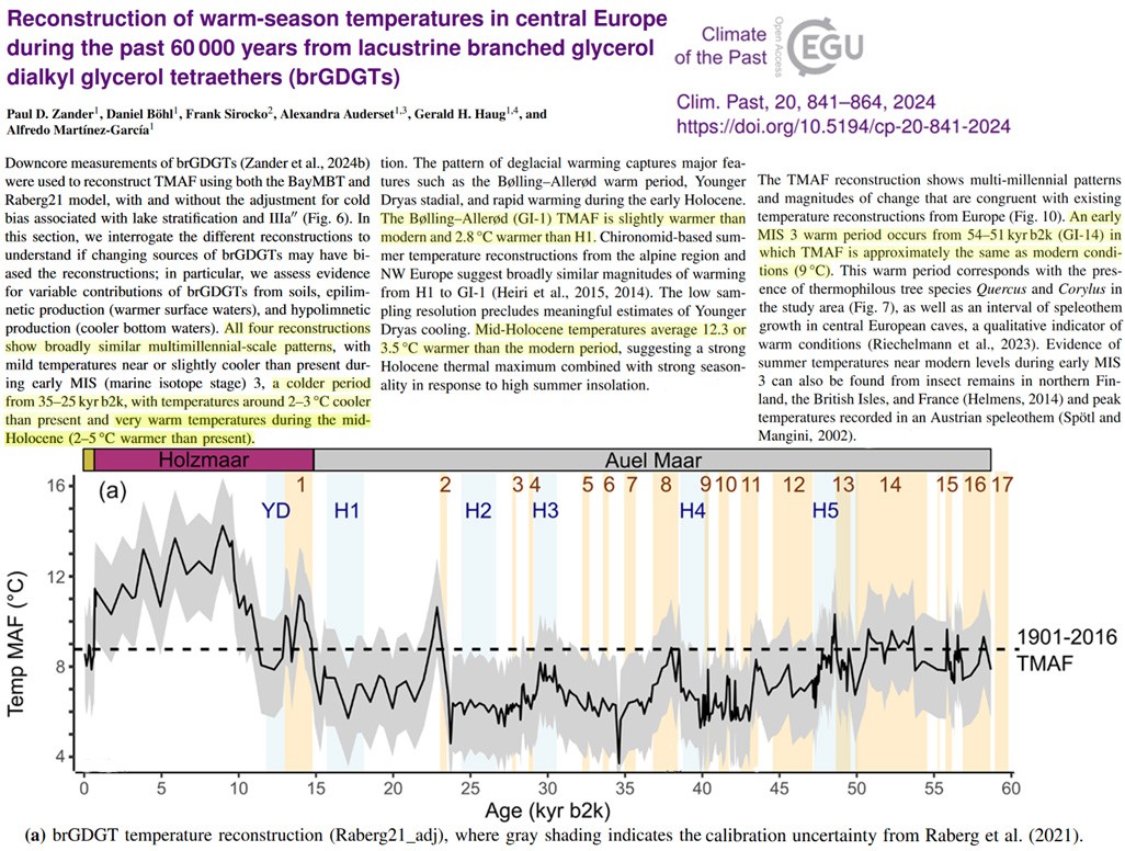 Utterly ridiculous claim that today’s temperature is higher than anything in the last 12 thousand years. Biology is the best indicator. Dozens of studies show that present tree line is well below the Climatic Optimum all over the world. In most cases by hundreds of meters. An example among many: