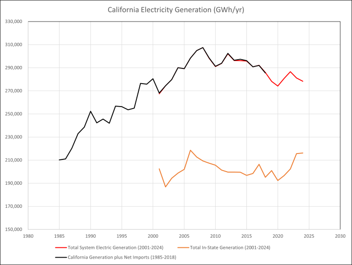 Over that same time period, California’s electricity generation actually declined.