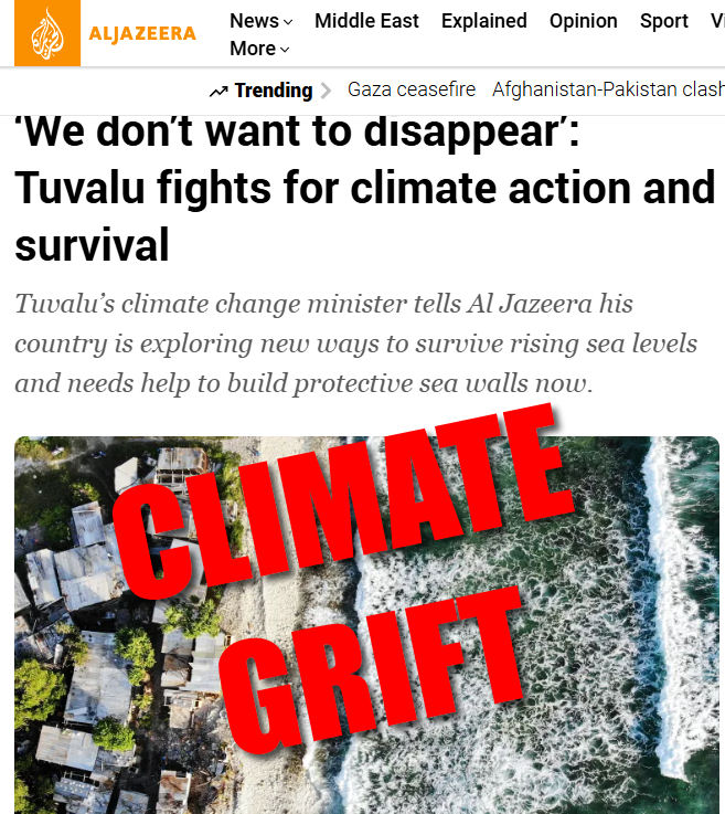 That brings us to the real story: money. Tuvalu’s leaders are campaigning for ever-greater “climate finance” commitments—what Minister Talia calls “real commitments” and “polluter-pay” reparations. In the article, he laments that the country “needs it now, in order for us to respond to the climate crisis.” But what Tuvalu really seeks is not salvation from the sea—it’s a bigger slice of the climate funding pie. As WUWT has observed, these small island governments have learned that portraying themselves as victims yields lucrative international sympathy and cash. They know a good grift when they see it.