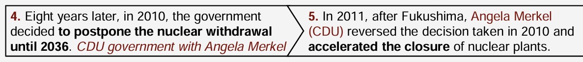 ““Throughout her first six years as chancellor, Merkel had championed Germany’s nuclear industry, dismissing objections as “absurd.” According to Merkel’s allies, she was jolted out of that view by the wreck of the nuclear-power plant in Fukushima prefecture in Japan.””