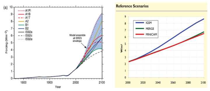 Pielke, Jr. recently posted the relevant information on his blog. As he explains, the Endangerment Finding relied on two sets of scenarios to project future changes in climate and the associated risks: the six scenarios developed in the IPCC’s Special Report on Emission Scenarios (SRES, 2000) and three Climate Change Science Program (CCSP) scenarios developed by Clarke et al. (2007).