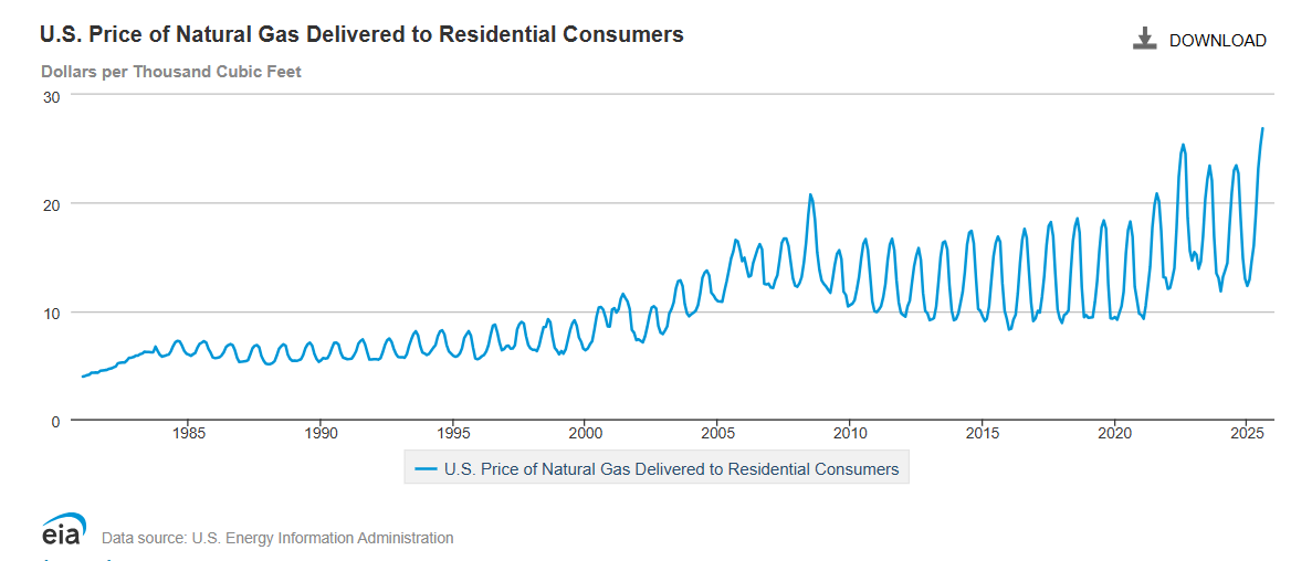 Looks like the price of natural gas responds to inflation like everything else. I like the superior performance and affordability of my natural gas powered furnace, water heater and range.