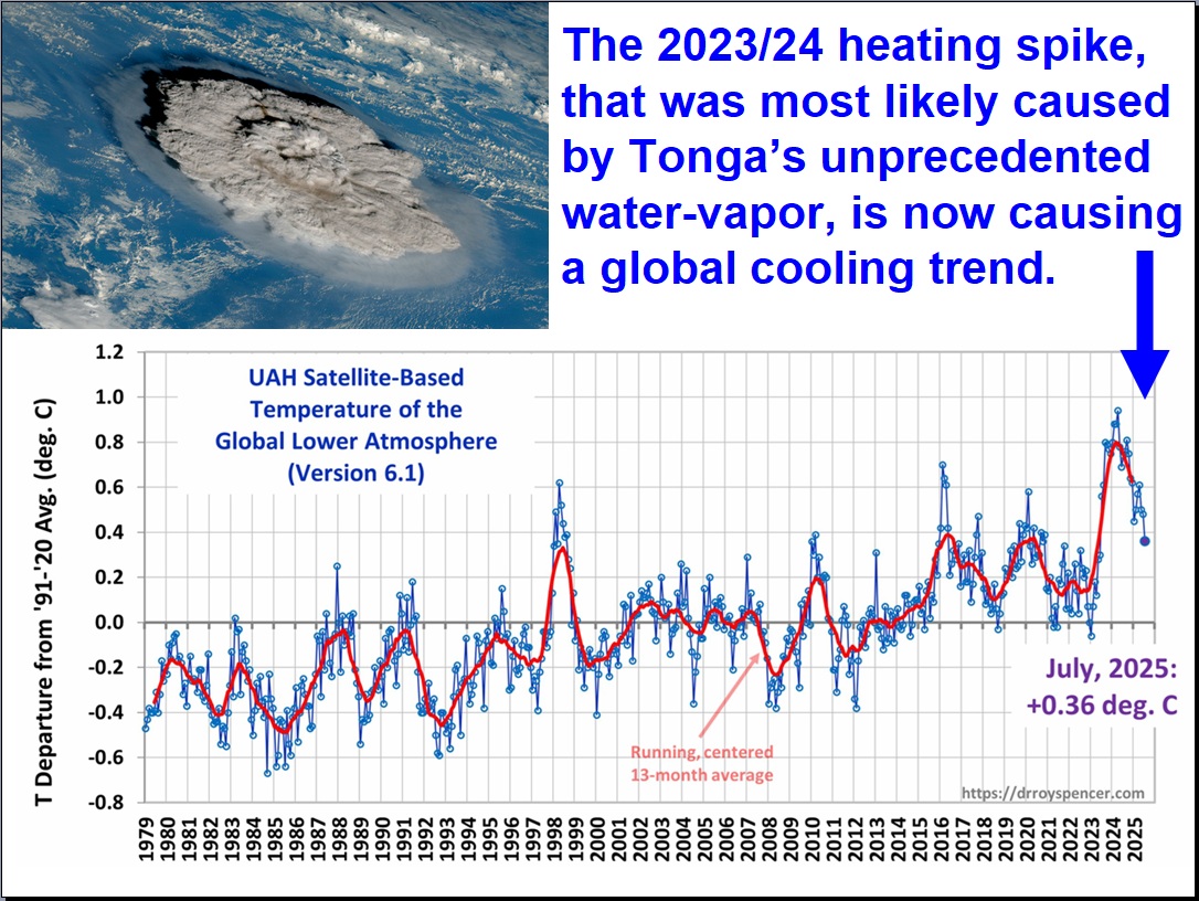Tonga did cause the UAH temperature spike, but no one yet knows exactly how. If we’d stop wasting billions on the fake climate crisis, we would be closer to understanding how our basic atmosphere actually works. I discuss this nearly daily on X (@_ClimateCraze). Alarmists and media won’t touch this subject because H2O and not CO2 caused this spike. Even so, I have so far given 4 talks about this subject, with more to be scheduled next year … https://climatecraze.com/talks.php