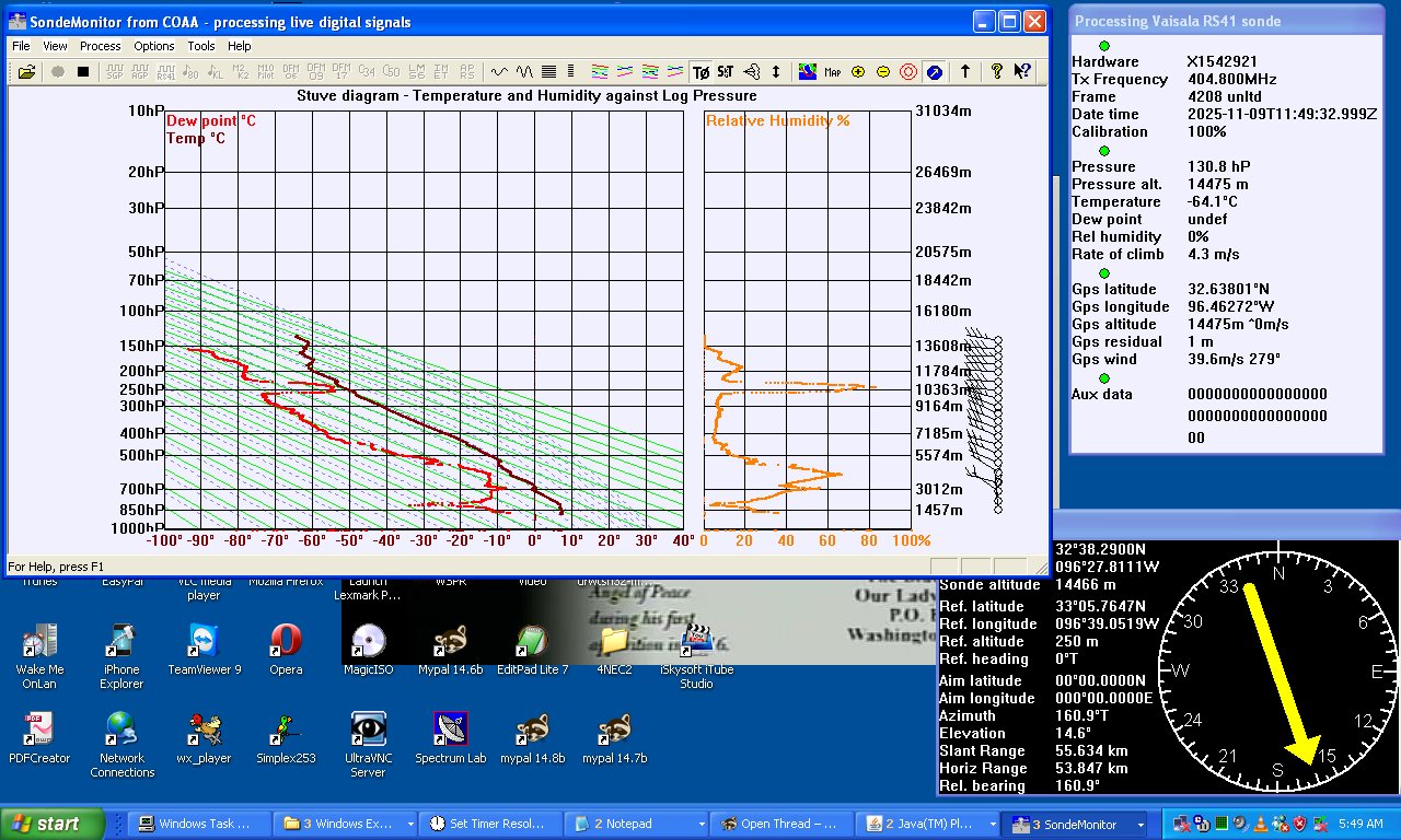 Equipment is modest, a Pro-2006 scanner (with FM discriminator tap), outside antenna, and “SondeMonitor” program that runs on Win Xp even.