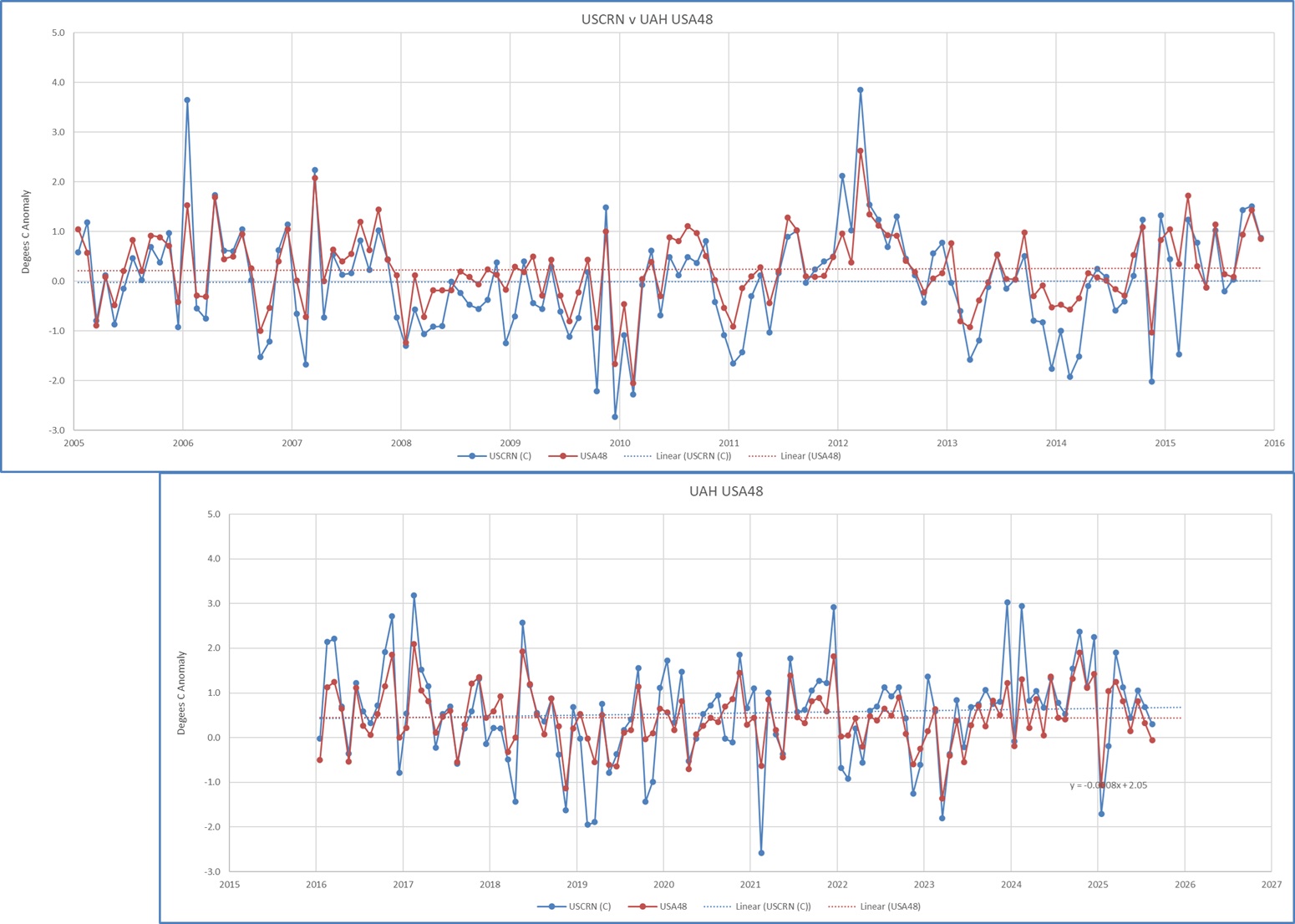 The point is that when independent measurement systems converge during their overlap period, that strongly constrains how large the true uncertainty can be, including retrospectively.
