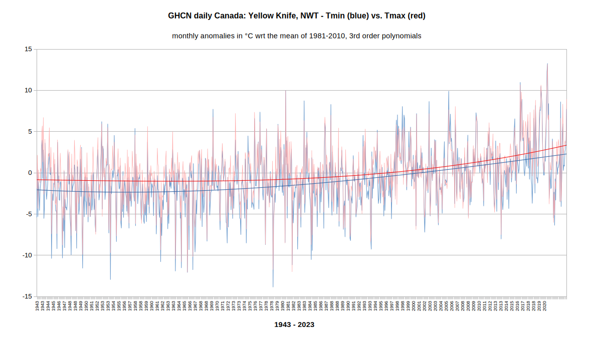 Yes, and if the current rate of warming persists (0.9C/decade – 1979-2023), NWT will have warmed an additional ~4.5C in 50 years. Quite the ice age recovery.