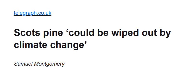 So let’s get this straight. Scots pines are suffering in Cambridge, because it is too hot and dry. And that is supposed to mean they will die off in the Scottish Highlands, where it is much cooler and wetter?
