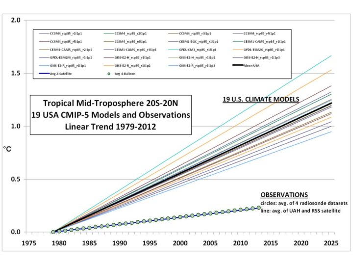 Epic Fail II: On June 4, 2013, Roy Spencer posted the results of important research in “EPIC FAIL: 73 Climate Models vs. Observations for Tropical Tropospheric Temperature” It stated:
