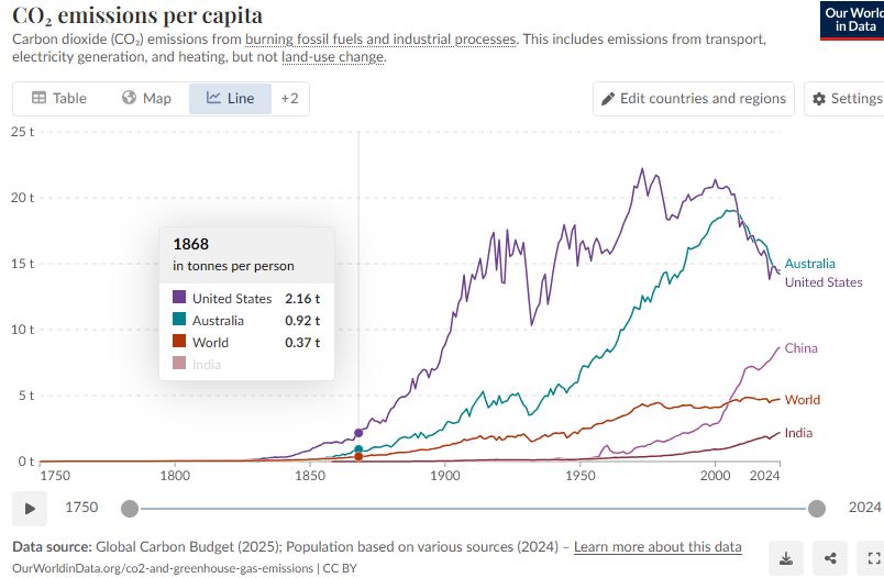 I think the thing is China is still playing the CO2 emissions game USA has well and truely given up on it. So USA has the highest emissions per capita is pretty moot and they don’t care and left the Paris agreement.