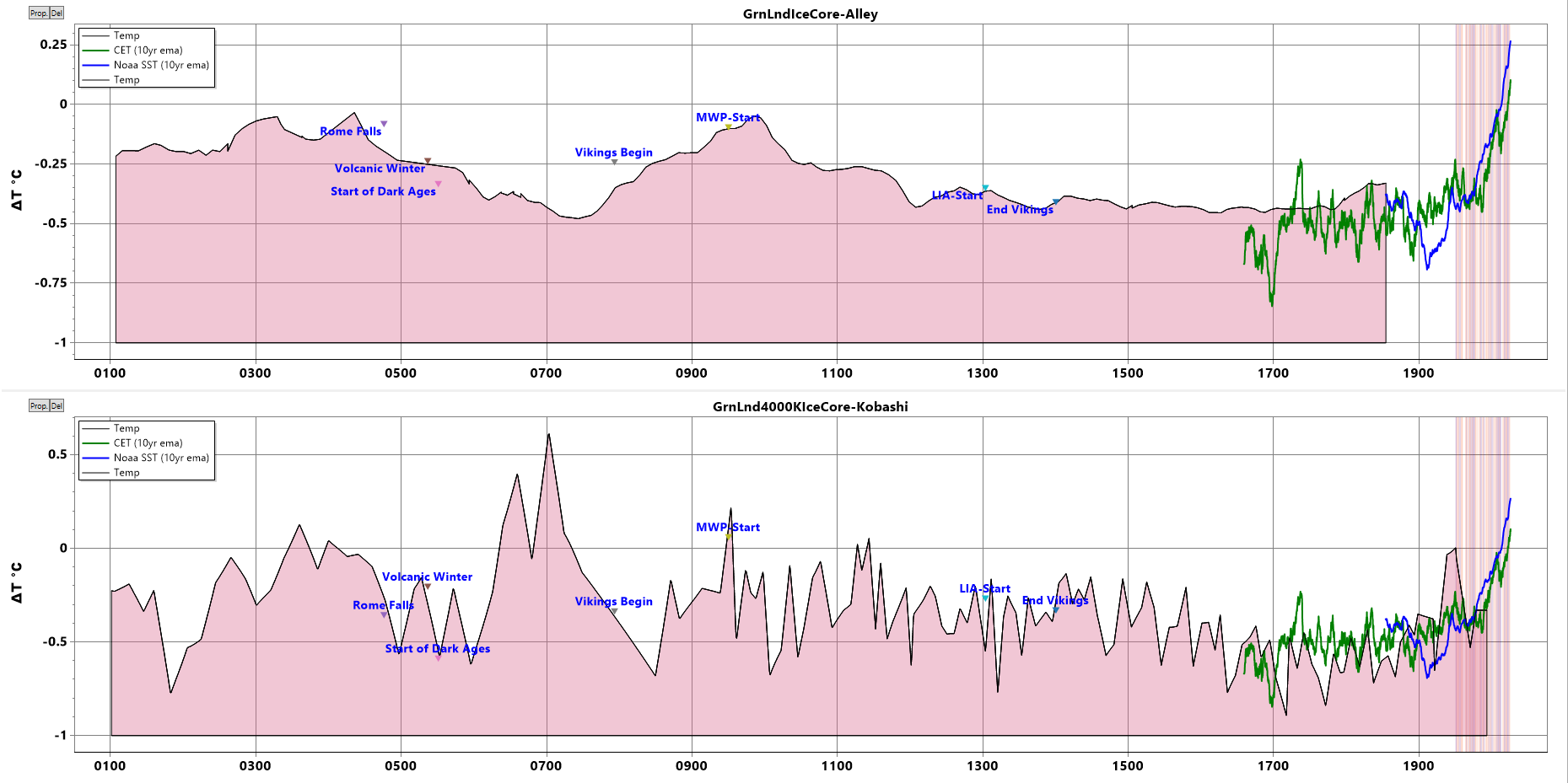 However all the Northern Hemisphere Ice Core records from Greenland show: