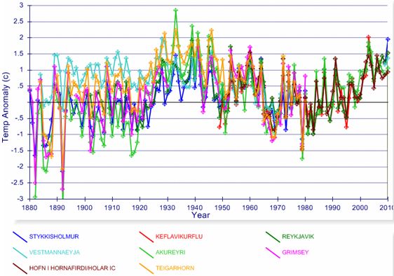 In fig. 5, the two main plots (Rosenthal and Vinther) are in actual degrees C. The plot of Christiansen and Ljunqvist’s reconstruction is an anomaly from the 1880 to 1960 average.